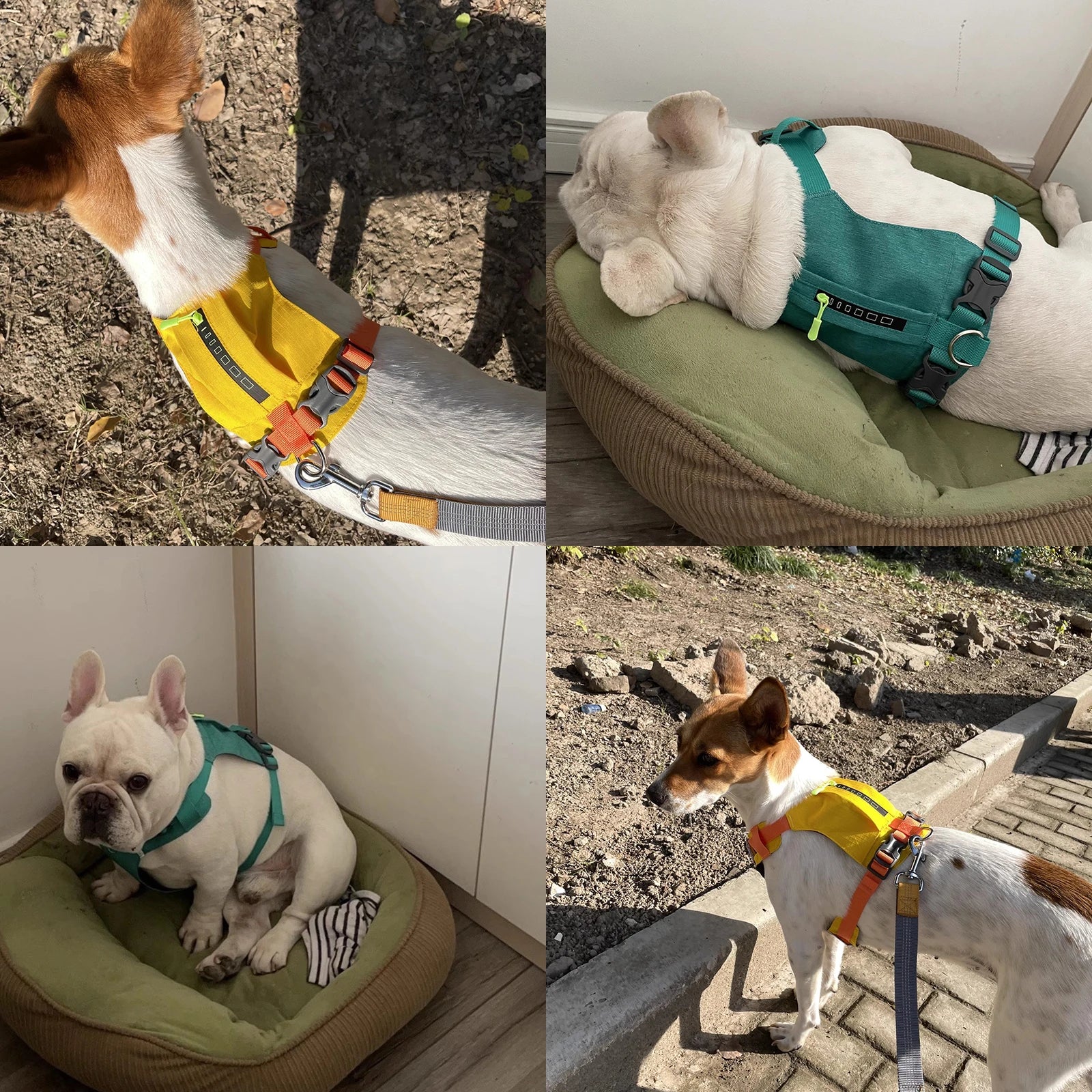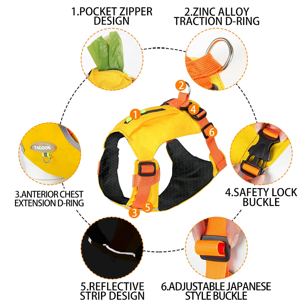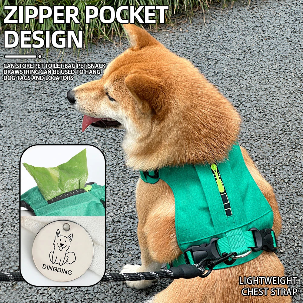 No Pull Dog Harness with Two Metal Rings and Pockets Adjustable Vest Style Dog Harness Reflective Breathable Soft Padding Suitab